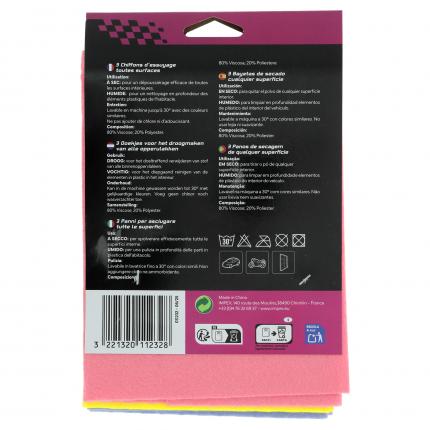 CARLinéa 3 Wiping Clothes for Dashboards 3 wipes of assorted colors, to clean all surfaces. They can be used wet for washing or dry for wiping. In a dense material, are very absorbent. Dimensions : 40x38 cm