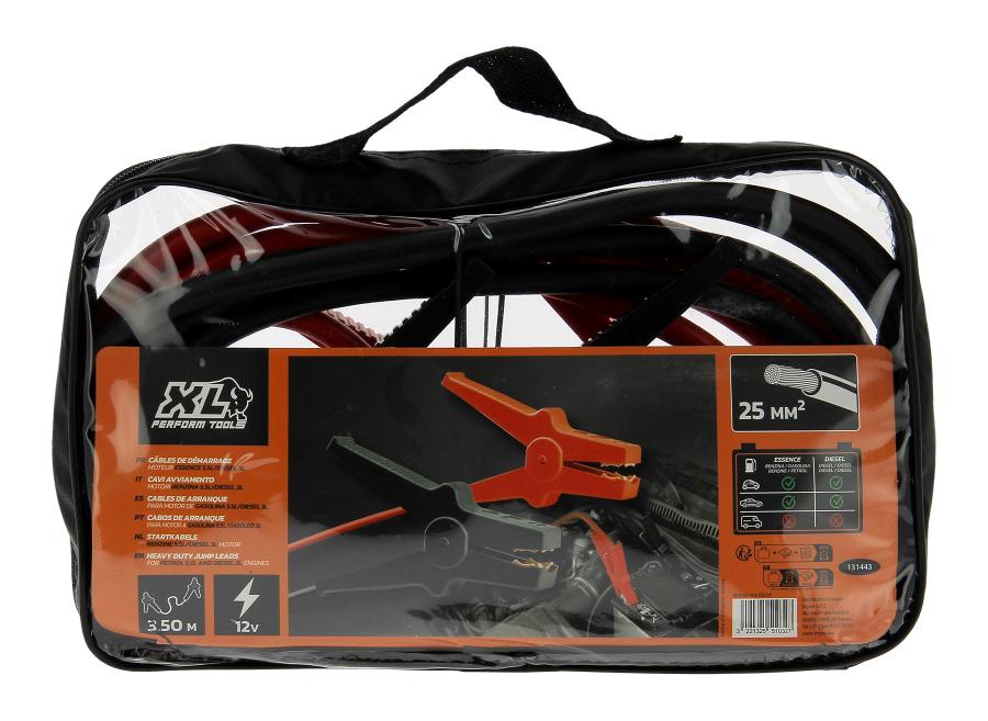 25mm2 starter cables designed for petrol-engined vehicles with a max capacity of 5.5 litres and diesel-engined vehicles with a max capacity of 3.0 litres