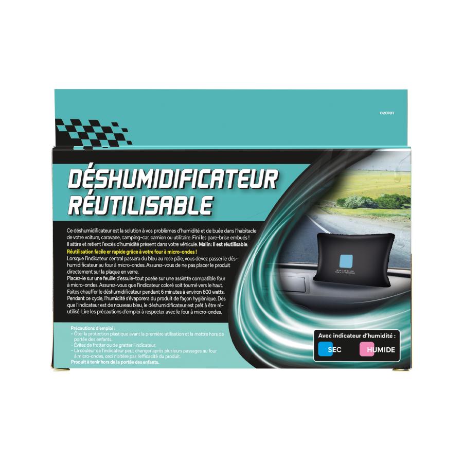 CARLinéa Reusable Dehumidifier The end to misted up passenger compartments! The reusable Carlinéa dehumidifier provides a fast and effective solution to remove the moisture in a car, caravan, campervan, truck or van. Installed in the vehicle, it attracts and retains the excess moisture. The best bit? It is reusable! It is ready for re-use after 6 minutes in the microwave. The central indicator indicates when to dry the item out.
