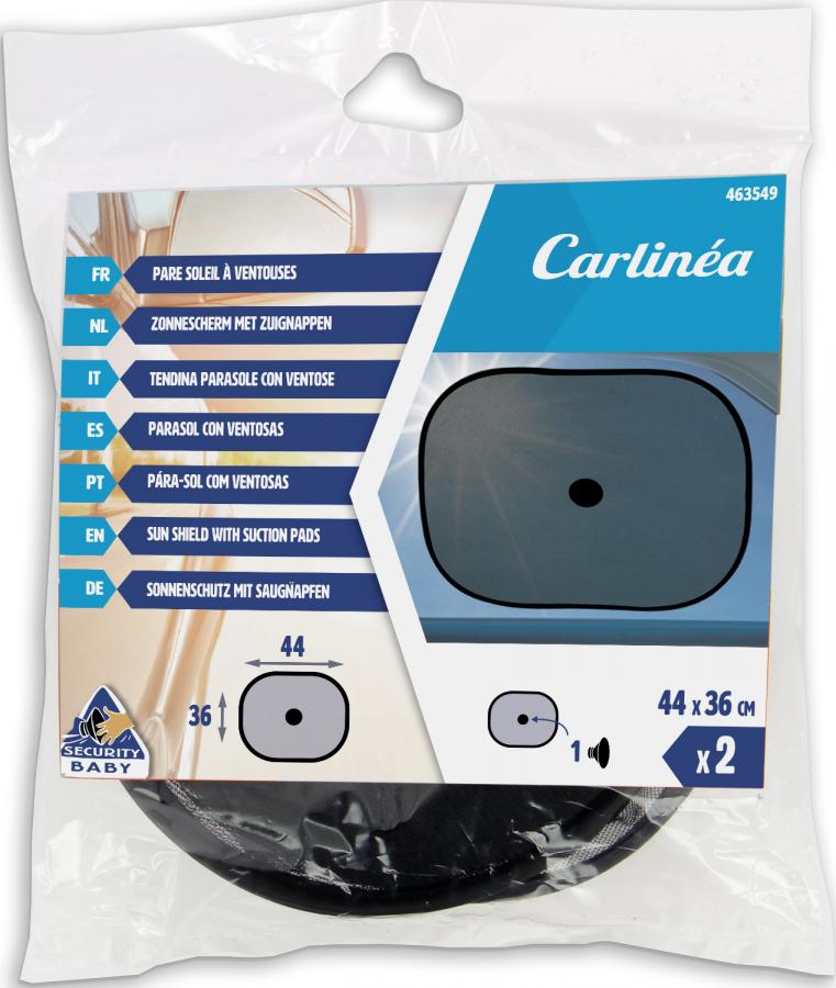 CARLinéa 2 Standard Side Suncreens 2 sunscreens for rear side windows with child security suckers. Standard shape dimensions 36 x 44cm approximately. Polyester mesh black fabric For improving passenger comfort, these side screens dress up and protect your cabin while preserving visibility Easily installed and folded in an instant. Suitable for side rear windows