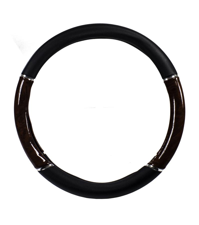 CARLinéa Black & Imitation Wood Steering wheel cover