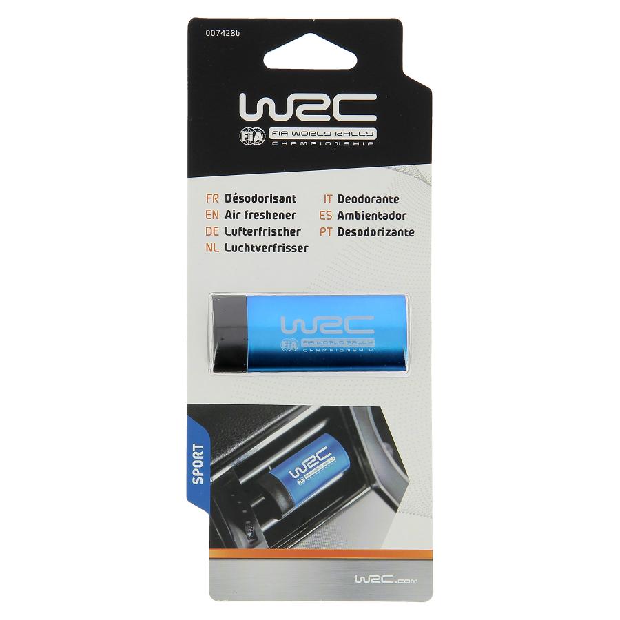 WRC AMBIENTADOR BARRA METAL SPORT Ambientador WRC tira efecto metal para rejilla de ventilación. Aroma de deportivo para perfumar sutilmente tu vehículo. Estilo deportivo y decorativo para este ambientador de efecto metalizado, en colores WRC, para aficionados y seguidores del espíritu rally. Para fijar a la rejilla de ventilación mediante el clip en la parte posterior. Perfume activo por un periodo de 20 a 30 días. Dimensiones: 62x25x60mm.