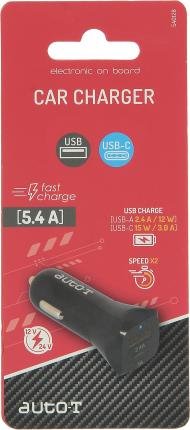 AUTO-T carregador 12/24V 2USB. Carregamento rápido 2.4A