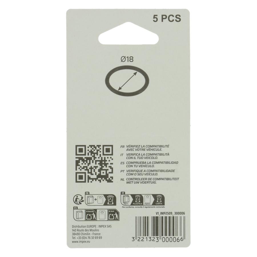 5 juntas tóricas de 18 mm de diámetro. Asignaciones principales: ALFA ROMEO, FIAT, OPEL