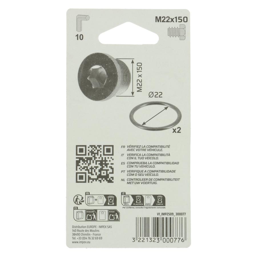 1 tapón de drenaje + 2 juntas plásticas metálicas diam.22mm. Asignaciones principales: ALFA ROMEO, FIAT