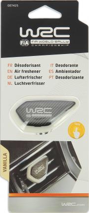 WRC AMBIENTADOR STICK RALLY VAINILLA Ambientador rally stick decorativo para la rejilla de ventilación. Aroma de vainilla para perfumar sutilmente tu vehículo. Estilo deportivo y decorativo para este ambientador con estampado de carbono en colores WRC, para aficionados y seguidores del espíritu rally. Para fijar en la rejilla de ventilación mediante el clip en la parte posterior. Perfume activo por un periodo de 20 a 30 días. Dimensiones: 62x32x41mm