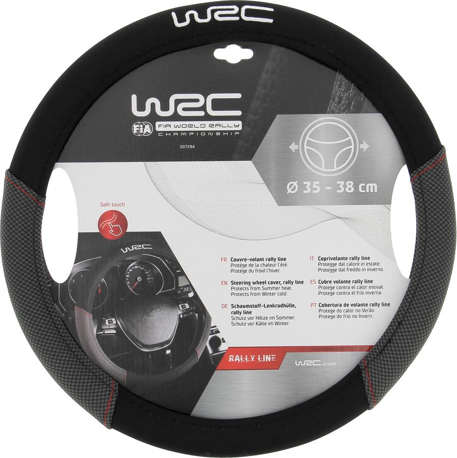 WRC RALLY LINE CUBRE VOLANTE UNIVERSAL Cubre volante WRC RALLY LINE universal para todo tipo de volantes VL Acabado EN costuras color rojo Protege del frío en invierno y del calor en verano. Logo bordado WRC. Diámetro de 35 a 38 cm.