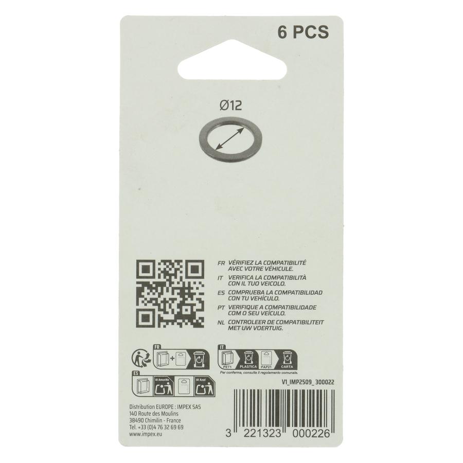 XLTECH 6 guarnizioni rame diam. 12 N°22