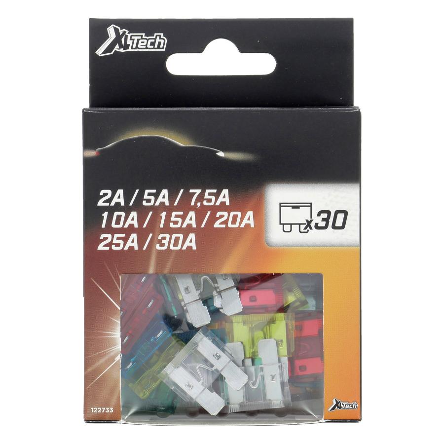 XLTECH 30 FUSIBLES ENCHUFE SURTIDOS 30 Fusibles enchufables surtidos. 2 unidades x 2A / 4 unidades x 5A / 3 unidades x 7,5A / 5 unidades x 10A 4 unidades x 15A / 4 unidades x 20A / 5 unidades x 25A / 3 unidades x 30A