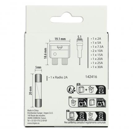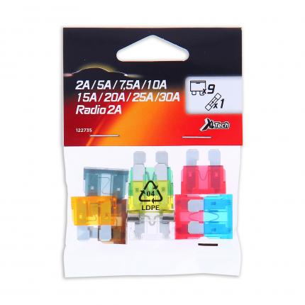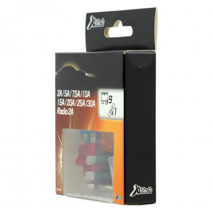 XLTECH 9 FUSIBLES ENCHUFABLES + 1 RADIO Enchufables : 2A / 5A / 7,5A / 2*10A / 15A / 20A / 25A / 30A Radio : 2A (vidrio)
