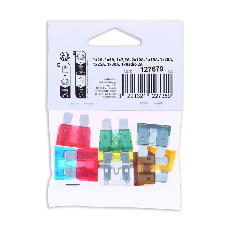 XLTECH 9 FUSIBLES ENCHUFABLES + 1 RADIO Enchufables : 2A / 5A / 7,5A / 2*10A / 15A / 20A / 25A / 30A Radio : 2A (vidrio)