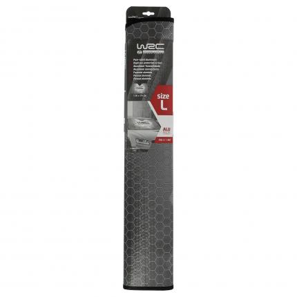 WRC PARASOL DELANTERO RALLY LINE TALLA L 130X70 CM Dale un estilo deportivo y atrevido a tu vehículo con este parasol WRC. Imprescindible a la hora de aparcar, protege eficazmente de los rayos del sol y del calor. Plegable y con cierre mediante pulsador, es fácil de guardar en su vehículo. Conduce en un coche más fresco y cómodo. Parasol isotérmico de aluminio para uso durante el estacionamiento Tenga en cuenta: este parasol no debe usarse cuando viaja. Sólo está destinado a uso estacionario. La decoración del parasol debe colocarse contra el parabrisas, visible desde el exterior de su vehículo. Advertencia: los productos para el cuidado del automóvil (p. ej. limpiadores de cuero, abrillantadores de plástico, etc.) pueden da¦ar la decoración del parasol. Talla L / dimensiones: 130x70cm. Mide tu parabrisas para encontrar el mejor tama¦o para tu vehículo.