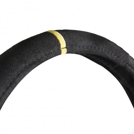 WRC CUBRE VOLANTE RACING EFECTO ANTE NEGRO Encuentra el espíritu de competición con la funda para volante Racing WRC. El anillo amarillo centrado ubicado en la parte superior indica la trayectoria de su automóvil. Fácil instalación, revestimiento antideslizante. Adecuado para volantes estándar de 35 a 38 cm.