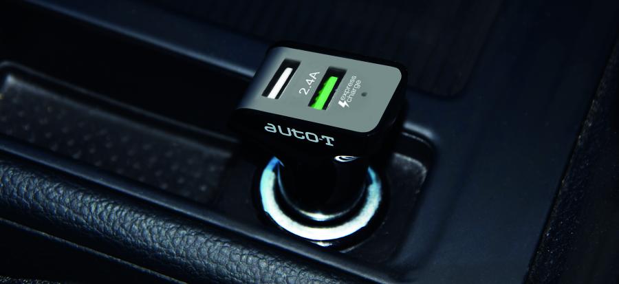 AUTO-T TOMA 12/24V 2USB CARGA RÁPIDA Enchufes para toma encendedor Auto-T con función 'Carga rápida' 2 tomas USB para una potencia total de 2,4 A: - 1 salida de carga rápida USB: de x1,5 a x3 más rápido que una toma USB estándar. - 1 salida USB estándar. Conexión de todos los smartphones, tablets, GPS, ... Control de funcionamiento iluminado. Carga hasta 2 dispositivos simultáneamente. (verifique la potencia máxima recomendada para sus dispositivos) Fuente de alimentación de 12V o 24V