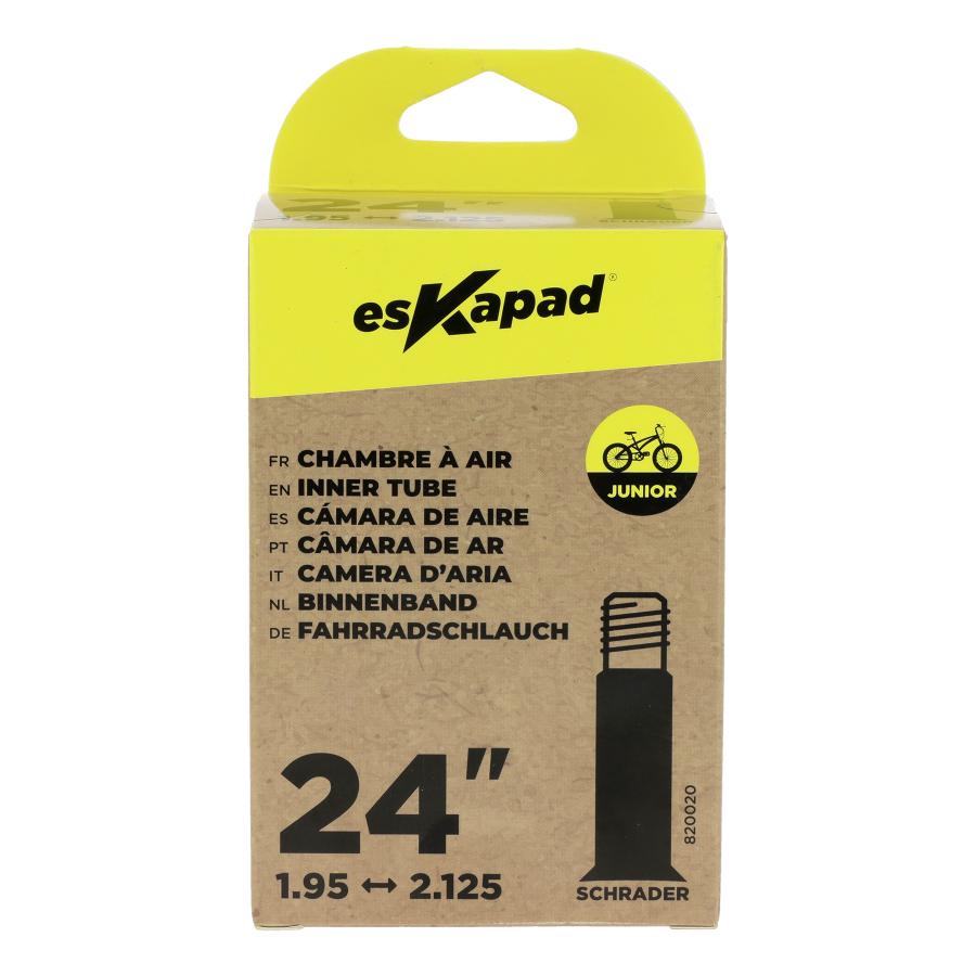 ESKAPAD CÁMARA DE AIRE 24X1,95/2,125V La cámara de aire esKapad está dise¦ada para bicicletas junior con ruedas de 24 pulgadas de diámetro. Adaptable a tramos de 1,95 a 2,125 con válvula schrader. ETRTO 50 - 57 - 507 Materiales: 100% caucho butílico. EsKapad es una marca francesa, creada y desarrollada por dos apasionados del ciclismo. Es en Is}re, cerca de las monta¦as, que nace esta colección y le ofrece combinar evasión, libertad, relajación, al tiempo que garantiza su seguridad y sus reparaciones.