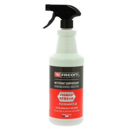 FACOM PUISSANCE 6 FORMULE PRO + est un nettoyant polyvalent avec une détergence renforcée. Il est très performant sur tous les types de salissures couramment rencontrées dans l'industrie et la mécanique. Sa formule est non-acide et composée de tensio-actifs biodégradables, d'un additif passivant qui ralentit l'encrassement et également d'inhibiteurs de corrosion. Il est utilisable pur ou dilué pour nettoyer les traces de graisse, huile, encre, poussières de freins, traces de caoutchouc, résines d'arbre, insectes... Efficace sur toutes les salissures courantes dans l'industrie et la mécanique. Pulvérisateur 800 ml