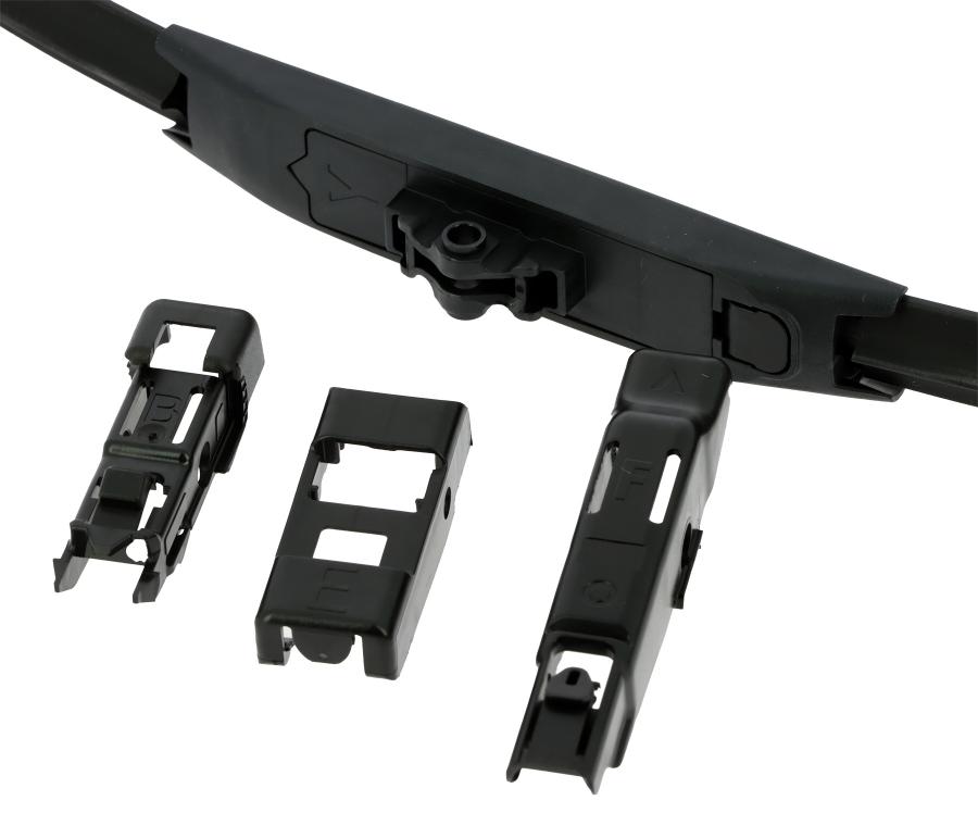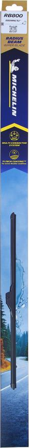 Michelin RB800 800mm Balai essuie glace plat Multiclips Technologie de balai de première qualité pour tous les types de véhicules. Performance supérieure offrant la dernière technologie d'essuyage pour tous les types de véhicules. Ailette centrale réduit le soulèvement du vent à des vitesses allant jusqu'à 120 km/h. Convient aux bras d'essuie-glace modernes OE spécifiques et aux bras à crochet traditionnels. Essais hivernaux simulés (à des températures aussi basses que -20c) pour garantir des performances fiables dans les environnements hivernaux difficiles. Balais prémonté avec le connecteur A. Connecteurs inclus : B+C - E - F