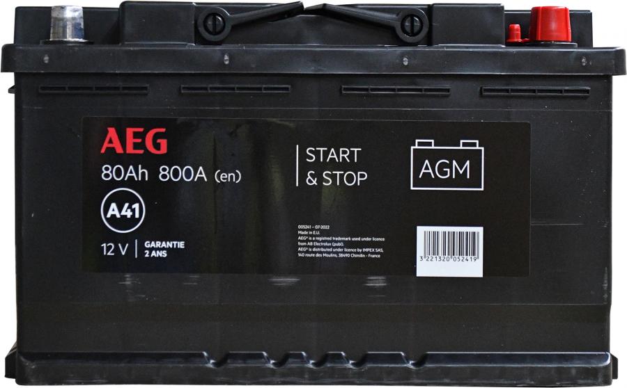 Batterie AGM pour véhicule équipés de systèmes start-stop Capacité : 80 Ah - Puissance : 800 A Dimension :L315 x l175 x H190 La batterie AEG convient pour toutes les utilisations et offre une puissance excellente, de la capacité, un bon courant de démarrage à froid, la fiabilité et un bon rapport qualité/prix.