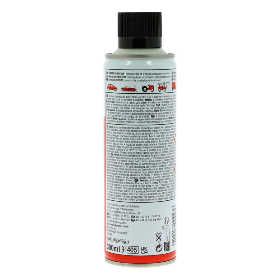 Démarrage instantané par tous les temps des moteurs essence ou diesel. A pulvériser pendant 1 seconde à l'entrée du filtre à air avant d'actionner le démarreur. Aérosol 300ml