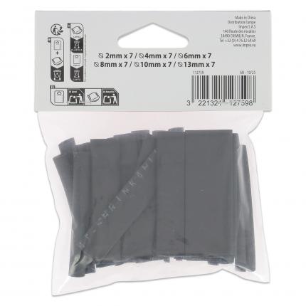 Set de 42 gaines thermo-rétractables polyvalentes. Idéal pour la réparation, protection et isolation des câbles, faisceaux et fils électriques. 6 diamètres: 2mm(x7) / 4mm(x7) / 6mm(x7) / 8mm(x7) / 10mm(x7) / 13mm(x7)