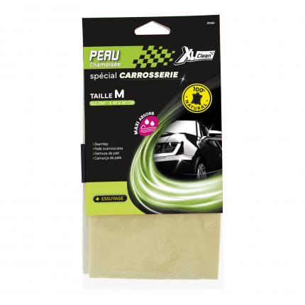 CARlinéa peau chamoisée CLASSIC taille M - 13.5 dm² Spécial carrosserie et vitres. Pour un essuyage complet de votre véhicule après rinçage. Finition optimale grâce à son grand pouvoir absorbant, sans trace. Peau 100% naturelle. Tannage 100% à l'huile de poisson pour une meilleure souplesse. Convient pour tout type de carrosserie. Dimensions : 45x30 cm environ, 13.5 dm² environ. Composition : 100 % peau de mouton naturelle Utilisation : Avant toute opération, passer la peau chamoisée à l'eau claire et l'essorer. Passer la peau humide sur la surface à sécher. Dès que la peau est saturée d'eau, l'essorer, puis renouveler l'opération. Après chaque utilisation, bien rincer la peau à l'eau tiède, laisser sécher.