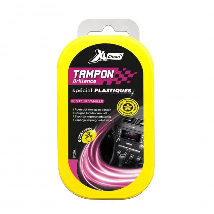 Tampon brillance senteur vanille. Fait instantanément briller plastiques et tableaux de bord grâce à son éponge imprégnée. Dépoussière et fait briller d'un seul geste. Sans résidus. Parfume agréablement l'habitacle d'une senteur vanille après application. Format compact. Prêt à l'emploi. Se range facilement dans sa coque plastique pour être à portée de main dans la voiture. Eviter l'utilisation sur sur le volant.