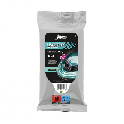Pack de 24 lingettes textiles imprégnées spécial vitres. Nettoie et dégraisse toutes les surfaces vitrées du véhicule, intérieur et extérieur. Élimine les saletés, résidus de fumée de cigarettes, traces de doigts, insectes Convient pour également pour les vitres teintées et toutes les surfaces vitrées de la maison. Le faible encombrement du pack permet un rangement idéal dans la boîte à gants du véhicule. Utilisation : Pour ouvrir le pack, décoller la moitié de l étiquette adhésive en facing , Tirer une lingette imprégnée , Refermer aussitôt la languette adhésive afin de conserver les lingettes restantes. Dimensions lingette : 21cm x 18cm environ Dimensions pack : H25cm x 10.5 cm environ