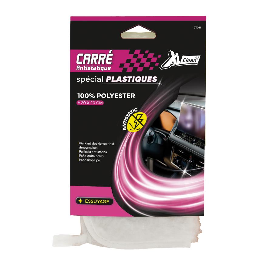 Carré d'essuyage spécial plastiques. Pour un dépoussiérage rapide et efficace grâce à ses propriétés antistatiques. Idéal pour tous les recoins et accès difficiles. Toujours à portée de main avec son format compact. Utilisation : A sec pour dépoussiérer, Combiné à des produits d'entretien pour le nettoyage des surfaces plastiques. Convient également pour le dépoussiérage à l'intérieur de la maison. Entretien : Après usage, rincer à l'eau claire et laisser sécher. Lavable en machine jusqu'à 30° avec des couleurs similaires. Composition : 100 % polyester Dimensions : 20 x 20 cm