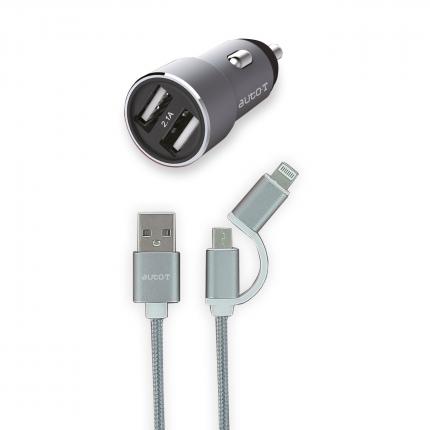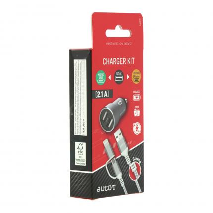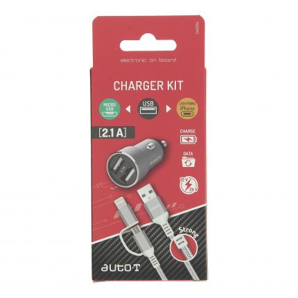 AUTO-T kit chargeur 12/24V 2,1A+câble 2en1 micro-usb/Ip