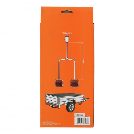 2 Feux 4 fonctions câblé Feu arrière remorque 4 fonctions Fonctions intégrées : Clignotant Feu stop Feu de position Feu de plaque (latéral) Boîtier ABS noir résistant UV et chocs Cabochon multi-couleur : rouge, orange et transparent Connexion : bornes à vis ou cosses Fixation : 2 vis (entraxe 90 mm) Alimentation : 12 V Dimensions : 160 x 80 x 50 mm Indice de protection : IP55 Applications : Équipement principal pour remorque, caravane, van Compatibilité : Montage à gauche et à droite pour remorques jusqu à 750 kg Standard universel Longueur du câble 4,50m. Entièrement câblés, prêts à installer, nécessaire de fixation fourni, et ampoules installées.