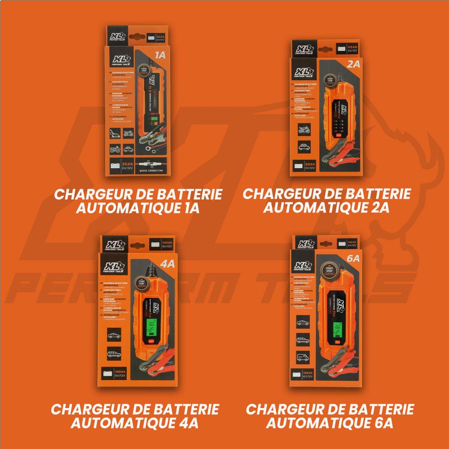 XLPT CHARGEUR DE BATTERIE 6A Idéal pour la charge de voitures familiales et utilitaires CHARGEUR INTELLIGENT Maintien de charge et gestion automatique du courant de charge AFFICHAGE DIGITAL: Lecture simple et précise COURANT DE CHARGE MAX: 6A PUISSANCE MAX: 100W TYPES DE BATTERIE COMPATIBLES: 6V / 12V - Plomb, Deep Cycle, AGM, GEL, Lithium, LiFePO4 INDICE DE PROTECTION IP65 contre la poussière et les jets d'eau. SECURITE: Protection inversion de polarité, court-circuit, mauvaise batterie LONGUEUR: 3 mètres MODE SUPPLY: Fourni une alimentation lors du changement de batterie pour conserver les données du véhicule