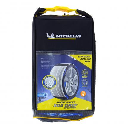 MICHELIN SOS GRIP® EVOLUTION, des Chaussettes à neige Textile Hautes performances et facile à installer. La nouvelle structure textile exclusive MICHELIN procure aux automobilistes une excellente adhérence, une motricité maximale et une facilité de montage, sans effort, en moins de deux minutes. Grâce à la mise au point de Multi bandes Textiles Ultra-absorbantes, la performance des chaussettes SOS GRIP® EVOLUTION augmente de +50% sur neige au démarrage. La bande de roulement en polyester haute résistante permet au produit de pouvoir être réutilisé sur plusieurs saisons. Également compatible avec les dispositifs ESP et ABS, cette chaussette à neige n'engendre aucune vibration lors de la conduite. MICHELIN SOS GRIP® EVOLUTION est un dispositif particulièrement adapté pour une utilisation d'urgence sur route enneigée, sur une courte distance et à une vitesse maximale de 50km/h. Adaptées également pour les véhicules avec passages de roue réduits. Grâce à son sac ultra compact, les chaussettes SOS GRIP® EVOLUTION seront toujours à porter de main. Conforme à la réglementation française : Arrêté ministériel des Transports du 18 juillet 1985 : «DISPOSITIFS ANTIDÉRAPANTS ÉQUIPANT LES PNEUMATIQUES» Il est important de vérifier dans le manuel du constructeur automobile, la chaînabilité de votre véhicule avant de vous équiper. Conforme à la norme EN16662-1 Compatible véhicule électrique