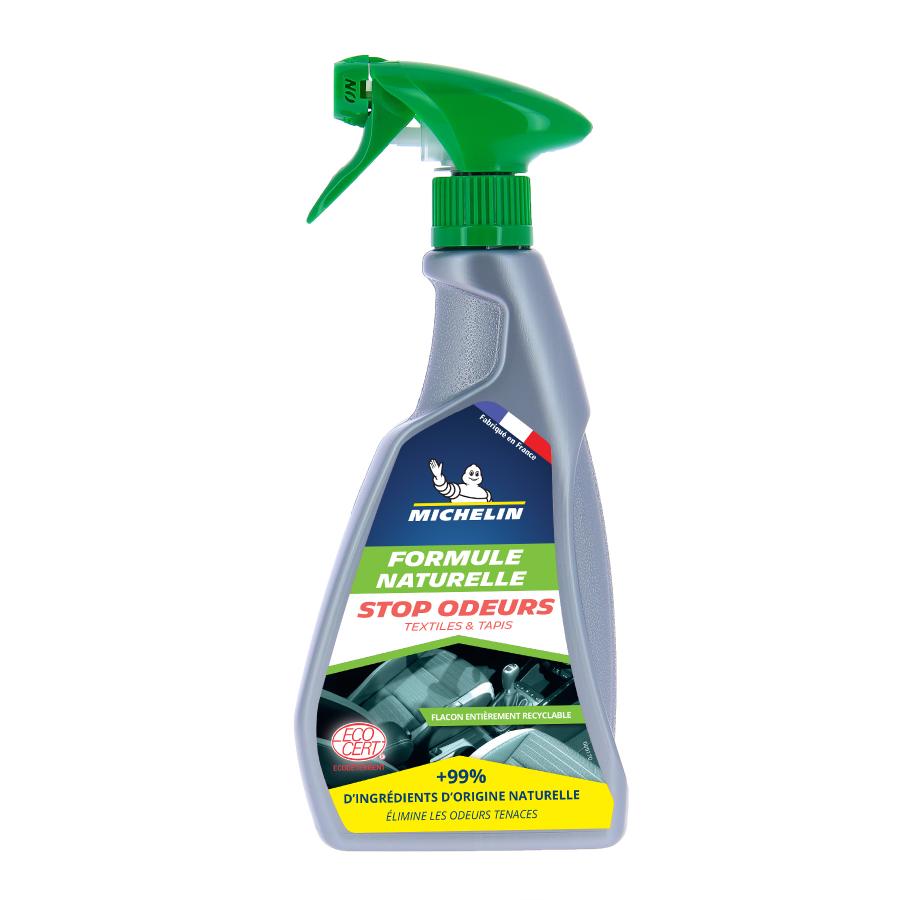 Avec le Stop odeurs MICHELIN, vous faites le choix de l efficacité et du développement durable. Spray 500ml avec lecture du niveau de liquide, Gâchette ergonomique pour une utilisation facile et efficace : - Élimine les odeurs de tabac, animaux, etc, de votre habitacle. - S'utilise sur les sièges auto textiles et tapis en toute sécurité. - Les odeurs disparaissent après séchage. - Laisse une senteur fraîche. 100 % du total des ingrédients sont d origine naturelle. Détergent certifié par ECOCERT Greenlife selon le référentiel ECOCERT disponible sur http://detergents.ecocert.com