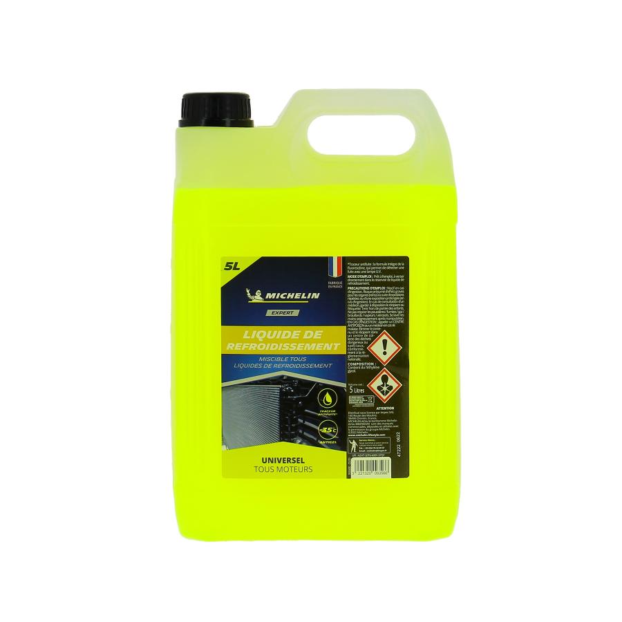 Liquide de refroidissement universel 5L Avec le liquide de refroidissement universel Expert MICHELIN, vous faites le choix de l'efficacité. UNIVERSEL TOUS MOTEURS MISCIBLE TOUS LIQUIDES DE REFROIDISSEMENT Liquide de refroidissement universel -35°C conforme aux cahiers des charges des principaux constructeurs européens. Ce produit dispose d'un agent anticorrosion 100% organique qui permet une utilisation jusqu'à 150000 km. Avec ses différents agents, il évite le tarte et assure une protection contre le gel allant jusqu'à -35°C et contre la surchauffe allant jusqu'à +107°C. Basé sur une technologie d additifs aliphatiques sans silicates, nitrates et phosphates, le liquide de refroidissement universel -35°C protège tous les métaux du moteur, y compris l'aluminium et les alliages ferreux, contre la corrosion pour une longue durée. Une excellente protection durable à haute température est garantie pour les surfaces d échange en aluminium contenues dans les moteurs modernes. Il possède une grande résistance à la surchauffe et au gel. Equipé d'un traceur, il permet de repérer les fuites. Mode d'emploi : Prêt à l'emploi, à verser directement dans le réservoir de liquide de refroidissement. Bidon 5 litres.