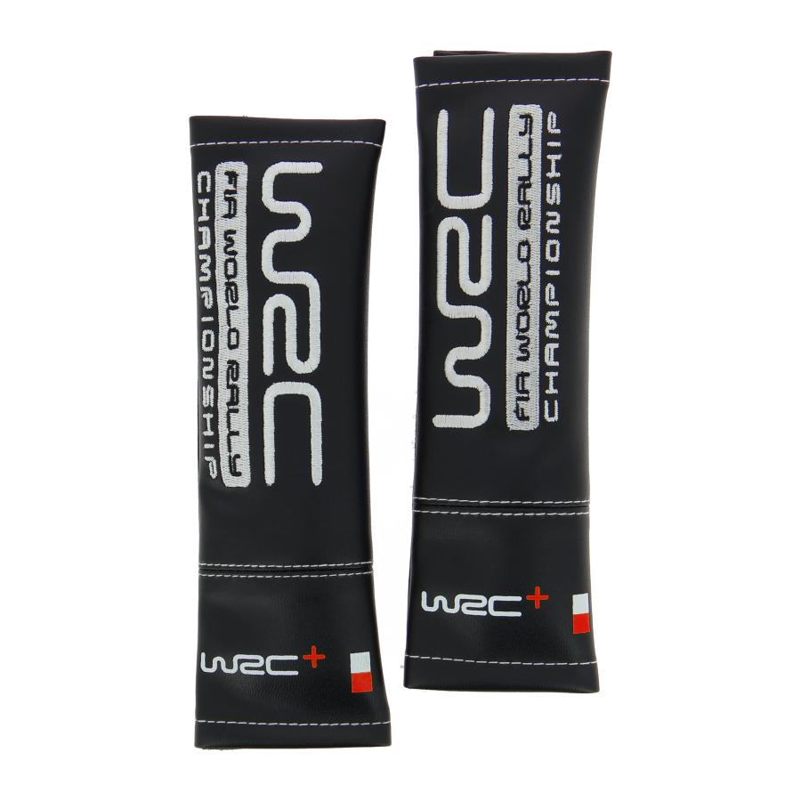 2 fourreaux de ceinture noirs en simili-cuir brodé WRC blanc.