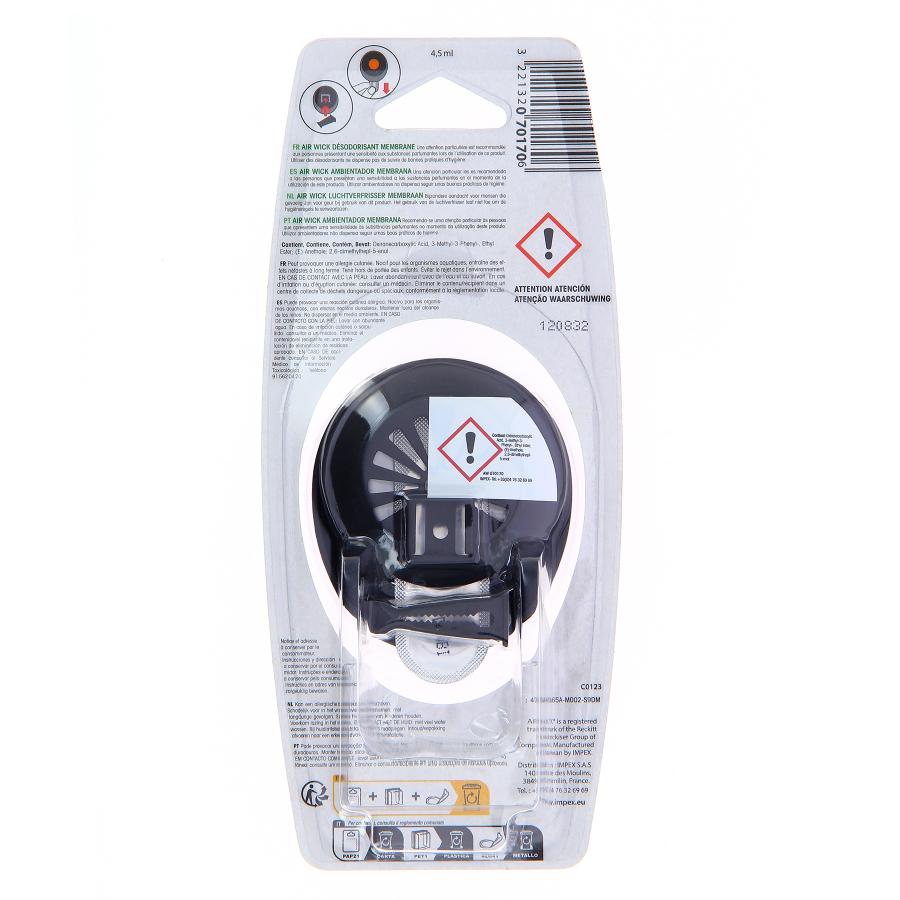 Air Wick, le spécialiste du parfum d'ambiance s'invite dans votre voiture. Design, qualité de parfum haut de gamme et facilité d'emploi. Diffuseur de parfum à clipser sur aérateur. La capsule de parfum liquide est dotée d'une membrane micro perforée qui permet une diffusion régulée sans risque de coulure. Vous pouvez choisir l'intensité de la diffusion du parfum en réglant votre ventilation. Efficacité assurée ! Vanille Epices, un mariage magique et envoûtant empreint d'exotisme ! Volume net : 4.5 ml