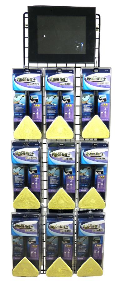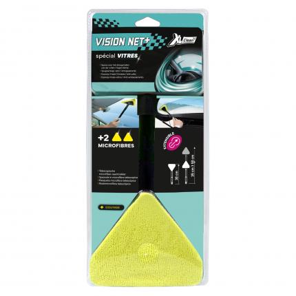 CARlinéa Vision Net +. Special Vitres Pour un nettoyage du pare-brise et des vitres intérieures dans les moindres recoins. Extensible de 30cm à 50cm pour un nettoyage de toutes les surfaces vitrées Les plus produit : - Toujours à portée de main pour un nettoyage rapide et facile du pare-brise et des autres surfaces vitrées - Elimine rapidement la buée - Idéale pour les angles et les zones d'accès difficile avec sa tête pivotante de forme triangulaire - Compact, rangement facile grâce à son faible encombrement - 2 microfibres supplémentaires fournies Les bonnets en microfibre sont lavable à 30° et réutilisables. Composition des bonnets : 80 % polyester, 20% polyamide