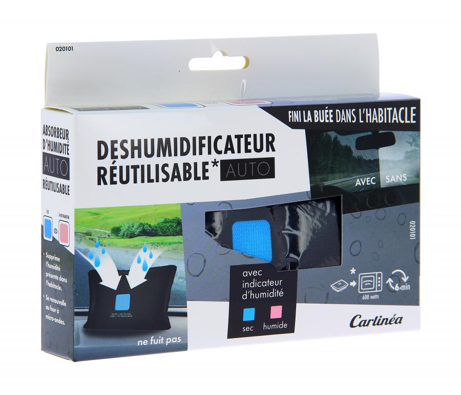 FINI LA BUEE DANS L'HABITACLE ! Le déshumidificateur réutilisable Carlinéa offre la solution rapide et efficace pour supprimer l'humidité dans la voiture, la caravane, le camping car, camion ou utilitaire. Posé dans le véhicule, il attire et retient l'excès d'humidité de l'habitacle. Il retient l'eau en toute sécurité, sans fuite. Le plus produit ? Il est réutilisable ! Dès que le témoin devient rose, passer le déshumidificateur au micro-ondes pendant 6 minutes. En quelques minutes, il sera de nouveau utilisable. L'indicateur sera bleu.