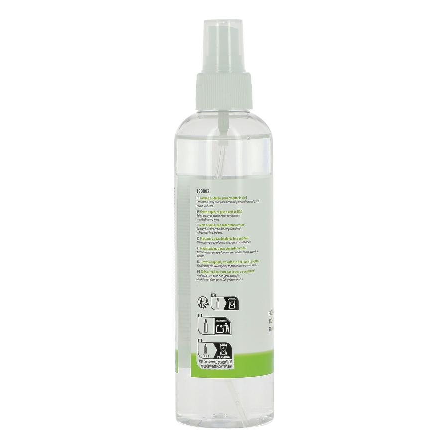 Spray bouteille translucide 250 ml. Désodorisant parfumé Pomme.