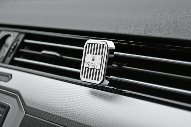 Un parfum original et subtil pour votre véhicule, grâce au diffuseur AMBIANCES DEVINEAU à clipser sur l'aérateur. Durée +/- 3 semaines. Parfum Cèdre de Virginie : intensité 3/5. Contient une molécule brevetée neutralisatrice de mauvaises odeurs de tabac. Fabriqué en Italie. Packaging avec sticker testeur. Unité de vente : 6 pièces, avec panachage 3 diffuseurs coloris noir mat + 3 diffuseurs coloris effet chrome.