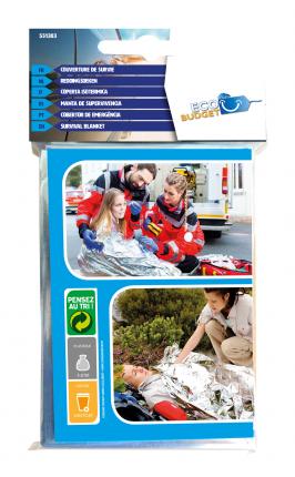 Couverture de survie Dimensions : 210 x 130 cm 2 faces couleur argent Matière : PE 12u