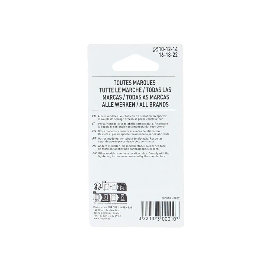 - 7 pièces diamètres : 10mm/12mm/2x14mm /16mm /18mm /22mm