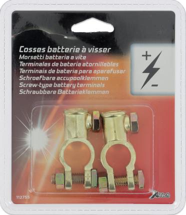 2 cosses de batterie à visser pour pôles + et -. Matériau Zinc. Montage simple et sécurisé. Convient aux câbles de 35mm² à 50mm². Double serrage.