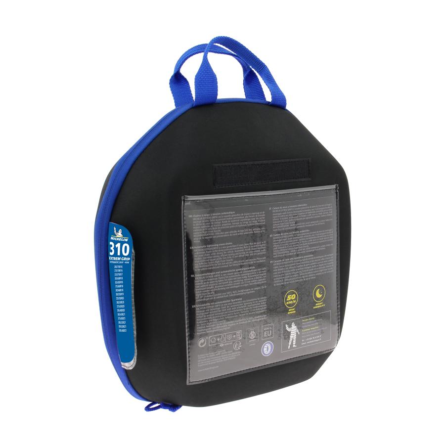 Paire de chaînes à neige homologuée à croisillons asymétriques spéciales SUV, 4x4, Camping-car et véhicules utilitaires. Visibilité plus : Extrem Grip® est équipé du système réfléchissant NVS -Night Vision Security- de Michelin qui accroît la visibilité nocturne latérale du véhicule. Chaînes à maillons de section carrée 13mm. 2 Systèmes de tension autobloquante Automatique et continue en conduite pour une facilité et une rapidité de montage. Butées de protection des jantes et enjoliveurs Repères de couleurs pour une facilité de montage. Livrées avec 2 maillons de rechange, une paire de gants à manche longue, une notice de montage plastifiée servant de tapis et un manuel utilisateur. Emballées dans une valisette antichocs avec 2 compartiments intérieur pour tenir les 2 chaînes séparées et éviter l'emmêlement.