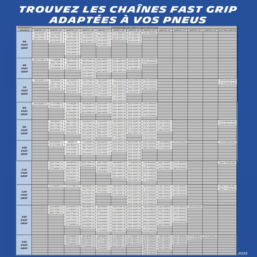 - Chaînes à neige Frontale à tension automatique, montage rapide