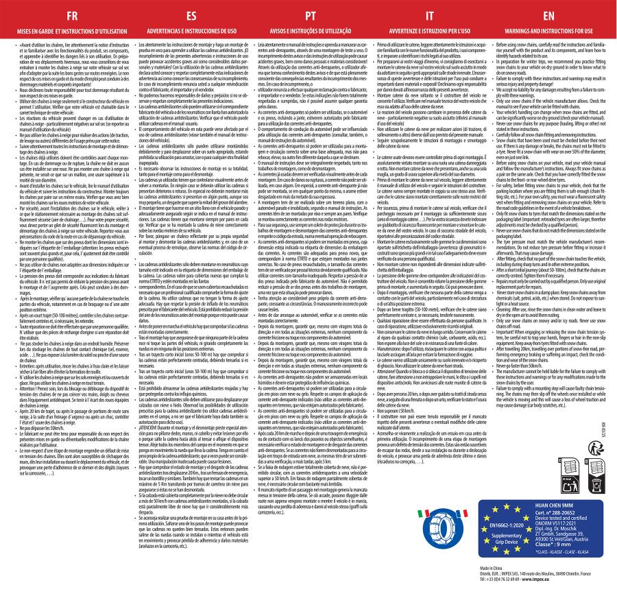 Chaînes à neige métalliques à croisillons en X, taille 70. Tension manuelle. Mise en place sans déplacer le véhicule. Maillons 9mm en acier haute résistance anticorrosion. Conditionnées en boite plastique blanche contenant 1 paire de gants, 1 notice d'utilisation et maillons de rechange. Rappel des affectations sur la boite. B26 Conforme Homologation EN1662-1:2020 Certification n° 288-20652 ONORM V5117:2021
