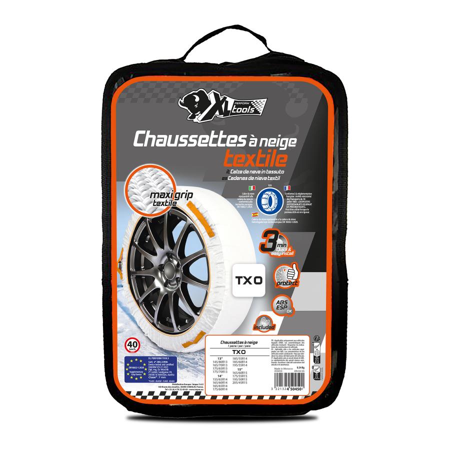 Chaussettes à neige TEXTILE hautes performances XLPERFORMtools - rapide et facile à installer et démonter. - Particulièrement adaptées aux véhicules avec passages de roue réduits. - Structure TEXTILE exclusive et brevetée, procurant un bon niveau d'adhérence sur neige et verglas. - Dispositif particulièrement adapté pour une utilisation en urgence sur une courte distance et à une vitesse maximale de 40km/h. Contenu de chaque sac : 1 paire de chaînes à neige textile, 1 paire de gants,1 mode d'emploi imprimé à l'intérieur du sac. Recommandations : - pour véhicules particuliers ou utilitaires pesant moins de 2 tonnes uniquement. - Montage exclusivement par paire, au moins sur les roues motrices. Pour les véhicules 4x4 (4 roues motrices), il est préférable de monter 2 jeux de chaussettes à neige textile XL Perform Tools. - Ne dépassez jamais la vitesse maximale de 40km/h. - Avant un stationnement prolongé, bien retirer les chaines à neige textile afin d'éviter qu'elles ne gèlent sur les roues, ce qui rendrait leur démontage moins facile. - Se reporter au manuel du constructeur pour s'assurer que le véhicule est bien chaînable. Conforme à la réglementation française : Arrêté ministériel des Transports du 18 juillet 1985 : « DISPOSITIFS ANTIDERAPANTS EQUIPANT LES PNEUMATIQUES » Panneau B26 Conforme à la norme EN16662-1 Certification 288-20617 ONORM V5121