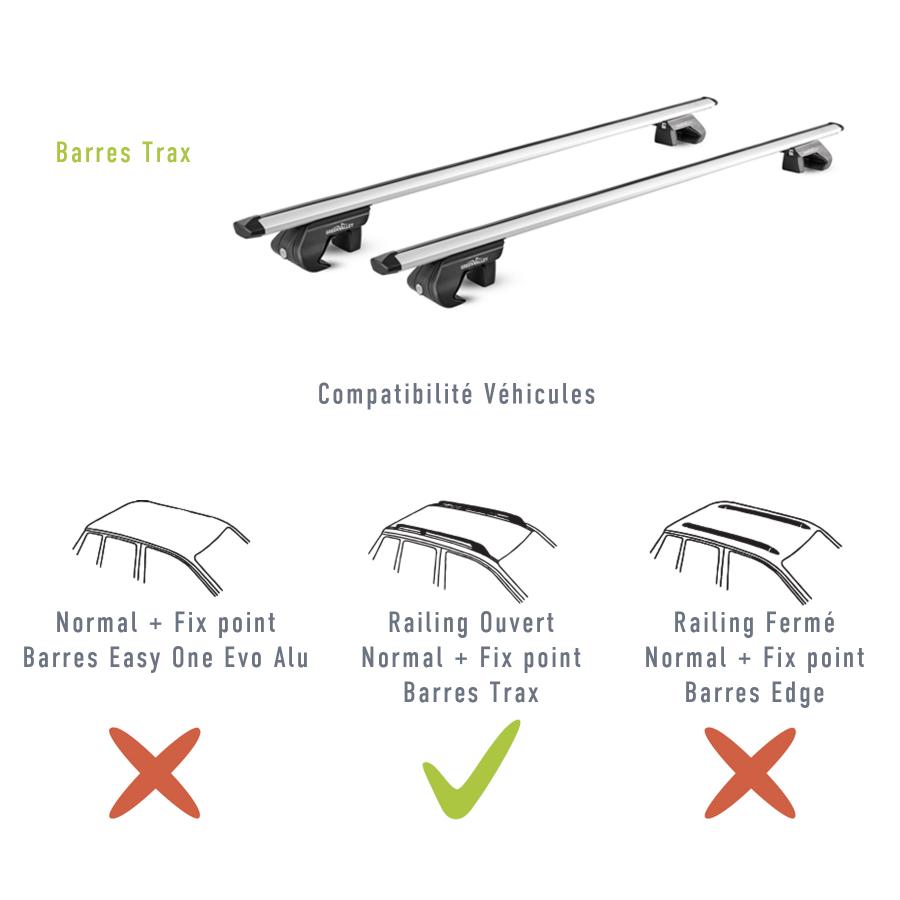 - Kit compatible avec les véhicules équipées de barres de toit intégrées