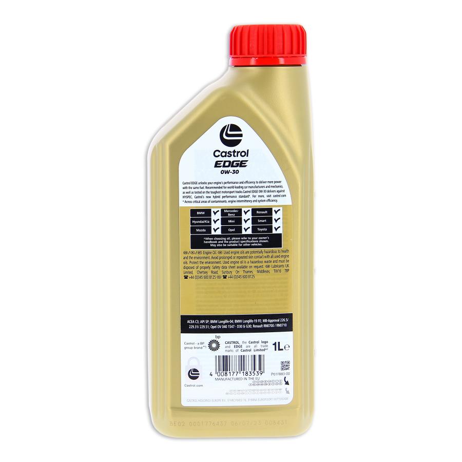 Description Avec le renforcement des réglementations mondiales en matière d'émissions, il est de plus en plus difficile de produire plus de puissance tout en améliorant l'efficacité du moteur. Jamais auparavant l'huile moteur n'avait joué un rôle aussi important dans l'obtention des performances. Les moteurs sont complexes et comportent de nombreuses pièces en mouvement - des mouvements qui peuvent gaspiller l'énergie utile du carburant en raison de leur inefficacité. Ces pertes peuvent avoir un impact sur la puissance. Le défi consiste à maintenir les niveaux de performance élevés attendus par les conducteurs, tandis que la technologie des moteurs s'adapte pour répondre aux limites législatives exigeantes. Castrol EDGE est plus forte sous la pression. Elle libère les performances et l'efficacité de votre moteur pour fournir plus de puissance avec le même carburant*. Castrol EDGE : Découvrez les véritables performances de votre moteur. * Plus de puissance pour la même quantité de carburant utilisée par rapport à la référence 5W-40, démontrée par des essais sur moteur pour plus de 80% du portefeuille Castrol EDGE en volume de ventes mondiales en 2021 PERFORMANCES : ACEA C3 API SP BMW Longlife-04 BMW Longlife-19FE MB-Approval 226.5/ 229.31/ 229.51 Opel OV 040 1547 - D30 Opel OV 040 1547 - G30 Renault RN 0700 / RN 0710