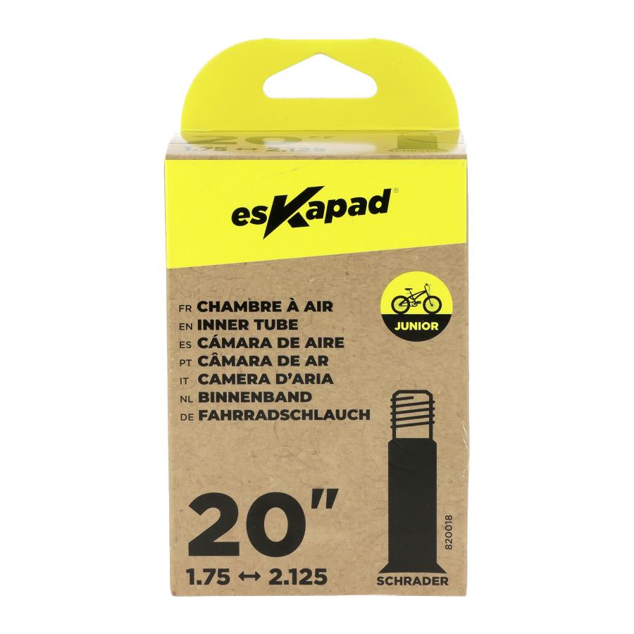 La chambre à air esKapad est conçue pour les vélos junior avec roues de diamètre 20 pouces. Adaptable sur des sections de 1,75 à 2,125 avec une valve schrader. ETRTO 47 - 57 - 406 Matériaux : 100% butyl caoutchouc. EsKapad est une marque française, créée et développée par deux passionnés de vélo. C'est en Isère, proche des montagnes que cette collection voit le jour et vous propose d'allier évasion, liberté, détente, tout en assurant votre sécurité et vos réparations.